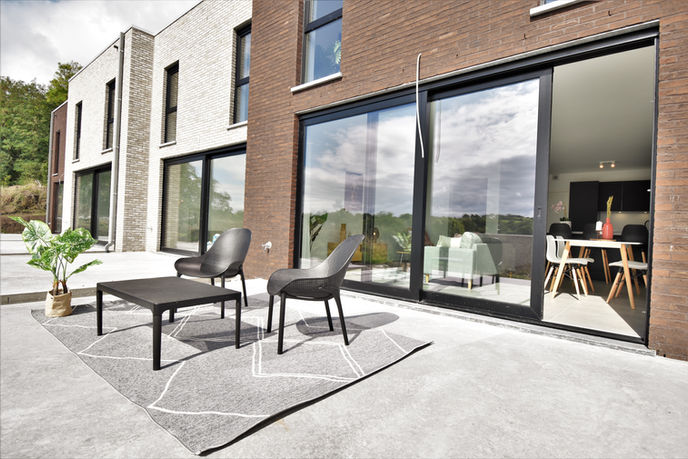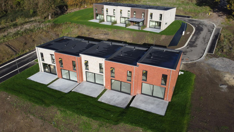 Dans un lotissement résidentiel, ces maisons neuves clé sur porte (PEB A/A+) avec jardin et terrasse de 24 m² offrent une vue imprenable vers le sud. Modernes et spacieuses, elles disposent d’un chauffage au sol avec pompe à chaleur et plusieurs panneaux solaires.